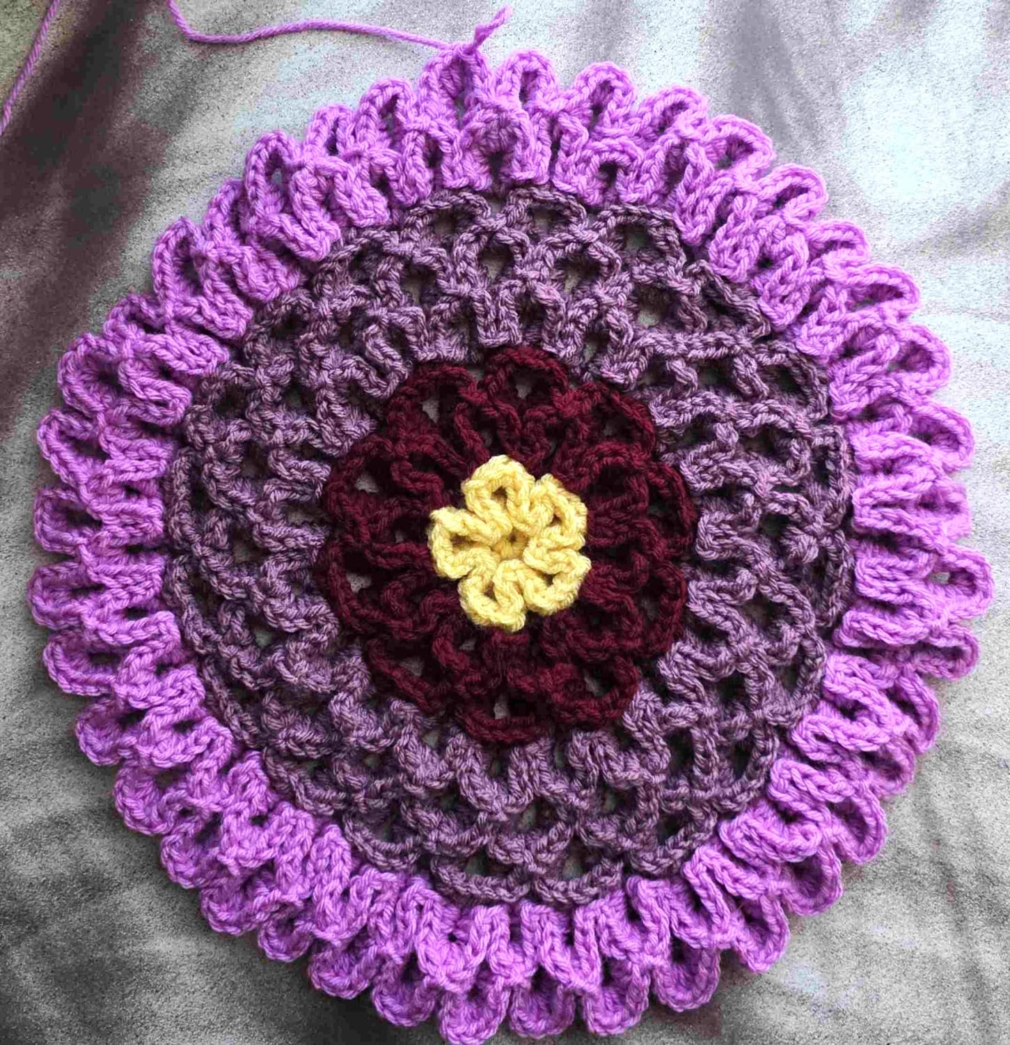 πThe Endless Dahlia blanket starts from the center and works its way around with rows of textured petals; and you decide when to stop.