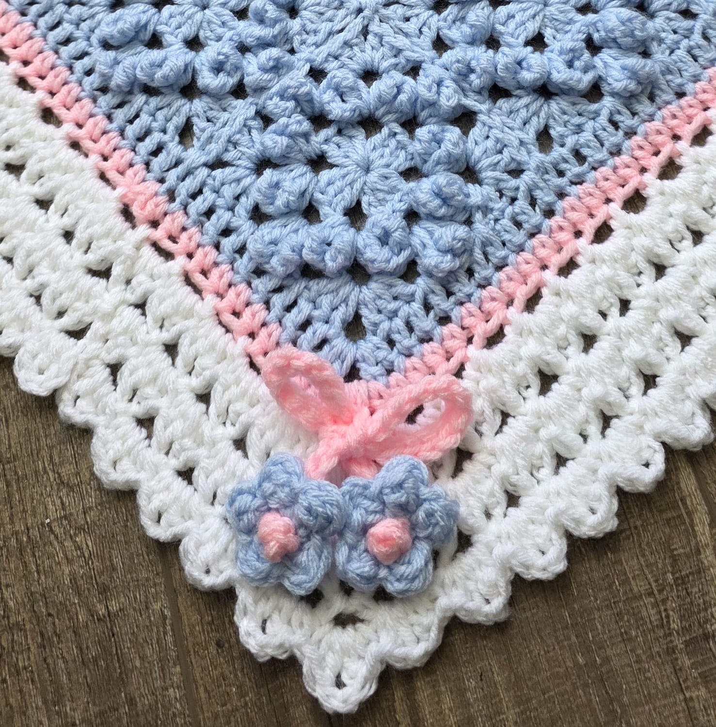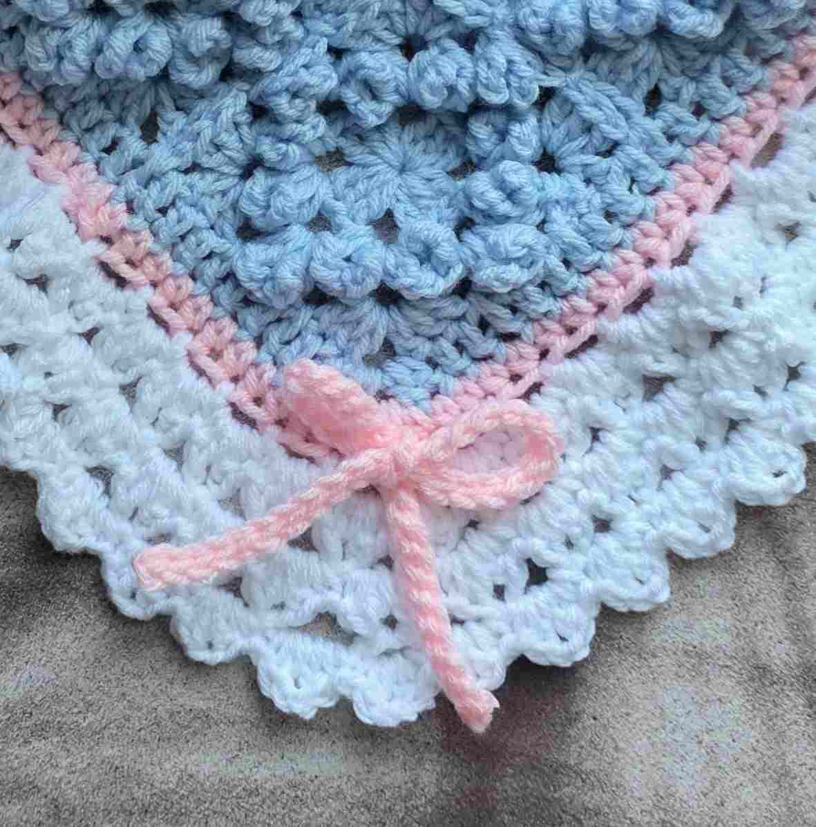 Textured granny squares, a lush lace border, bow ties and flowers - what's not to love?